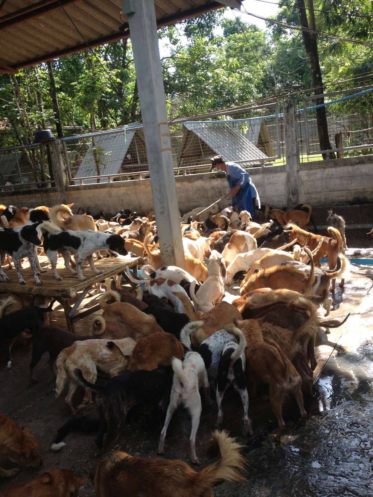 With 2,000 dogs living in buildings designed originally for pigs and with an actual capacity for only 400 dogs, it was understandably difficult for the 2 Thai Government vets and handful of staff to provide good welfare standards for each individual. Many of the dogs in the shelter were dying either from diseases such as distemper and parvovirus or starvation due to overcrowding and the dogs’ inability to compete for the food offered twice daily. It was the ineffectualness of the treatment and nursing and the cultural differences in relation to things like acceptance of euthanasia as a possibility, that they found particularly upsetting.